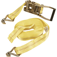 This Ratchet Tie Down Strap is made of heavy-duty, high-visibility yellow polypropylene webbing for large work loads and a 10,000-lb. breaking strength. Rugged heavy-gauge steel ratchet is designed to withstand the rigors of heavy-duty cargo transport.
